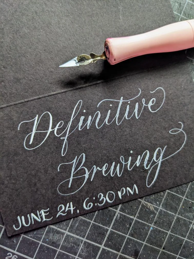 Join us at Definitive Brewing Company in Portland, Maine for pretty lettering! Whether you’re a stationery nerd, DIY Mr./Mrs.-to-be, or just a crafty individual, you’ll be introduced to modern calligraphy with a pointed dip pen and ink in this workshop. We will cover all the basics and prepare you to add those unique lettered details to your snail mail, wedding paper goods, home decor, and more! The perfect crafty night out!