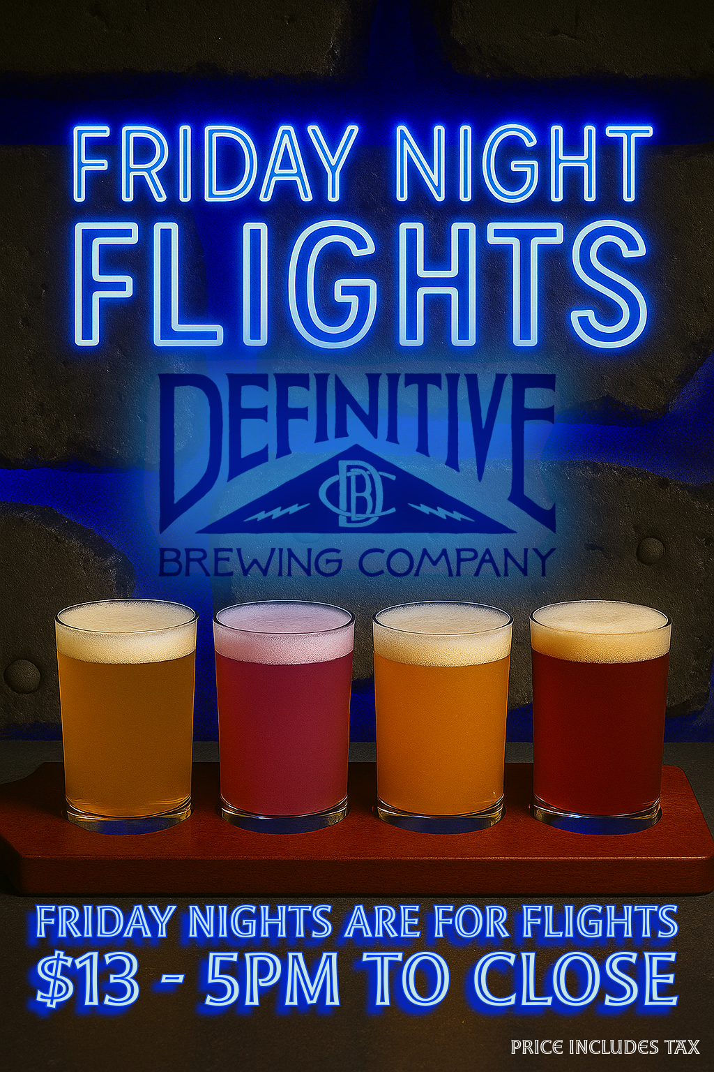 Friday Night Flights Friday, May 8, 2026 5:00 PM 8:00 PM 17:00 20:00 Definitive Brewing Company 35 Industrial Way Portland, ME, 04103 (map) Google Calendar ICS $13 Flights - 5pm-8pm!